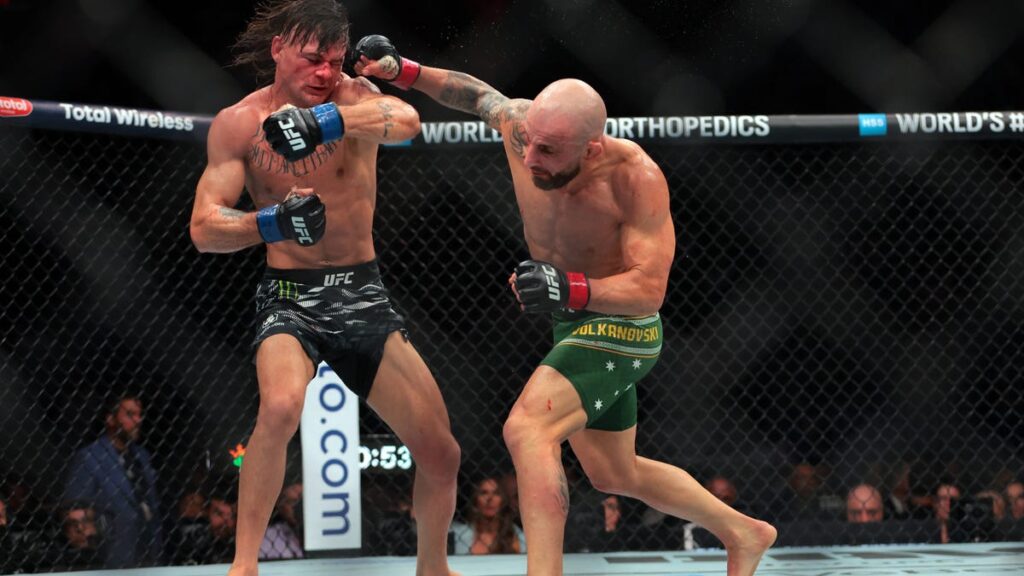 At the Kaseya Center in Miami, Alexander Volkanovski claimed the vacant featherweight title by defeating Diego Lopes by unanimous decision. Volkanovski (27-4 MMA, 14-3 UFC) emerged victorious and received a 45-day suspension. Lopes (26-7 MMA, 5-2 UFC) sustained significant damage during the fight and has been suspended indefinitely by the Florida Athletic Commission (FAC).